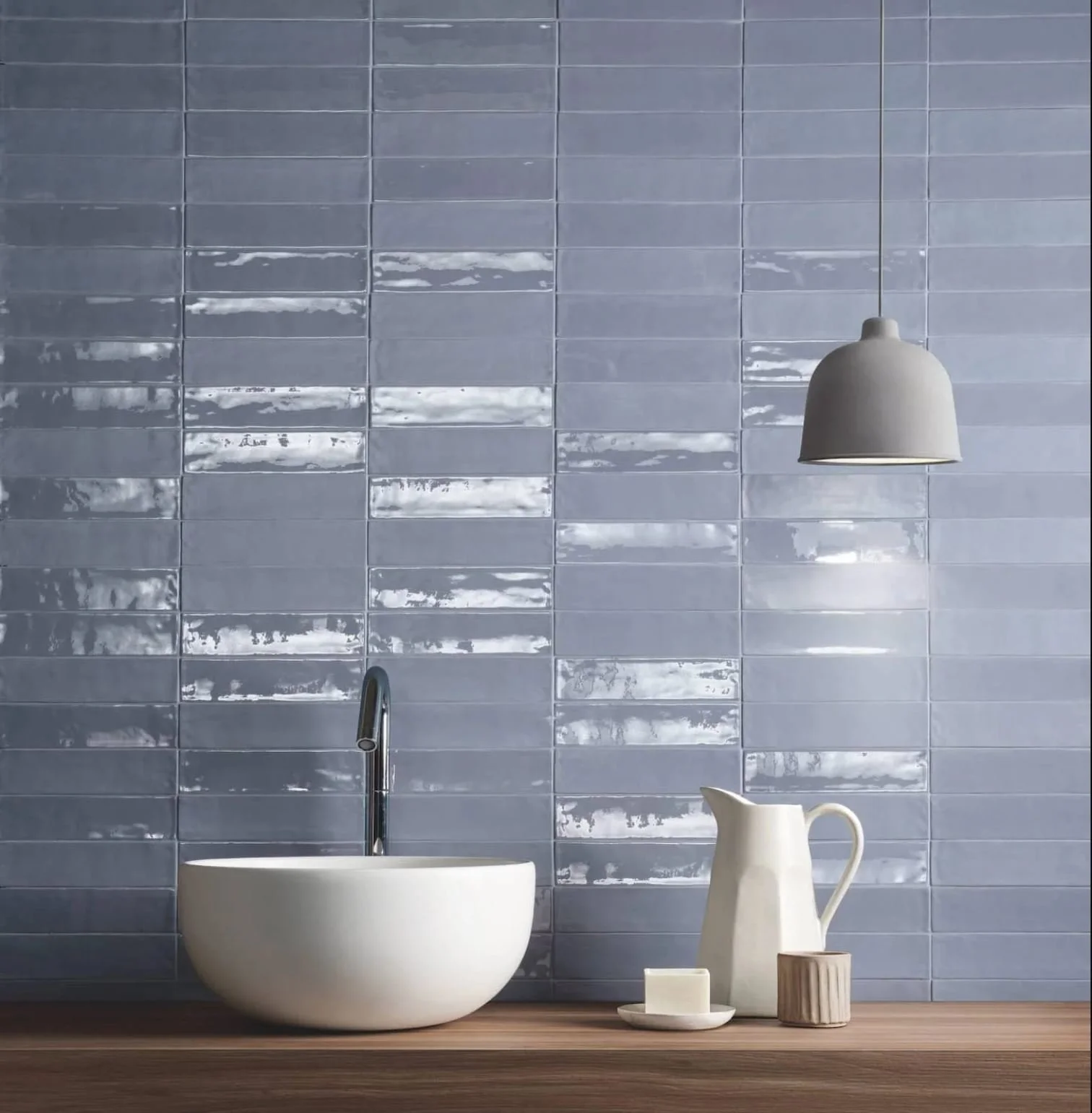 A fun way to have a more curated look in your space is to mix-and-match tiles that fall within similar themes, but are made from different materials or have different finishes.