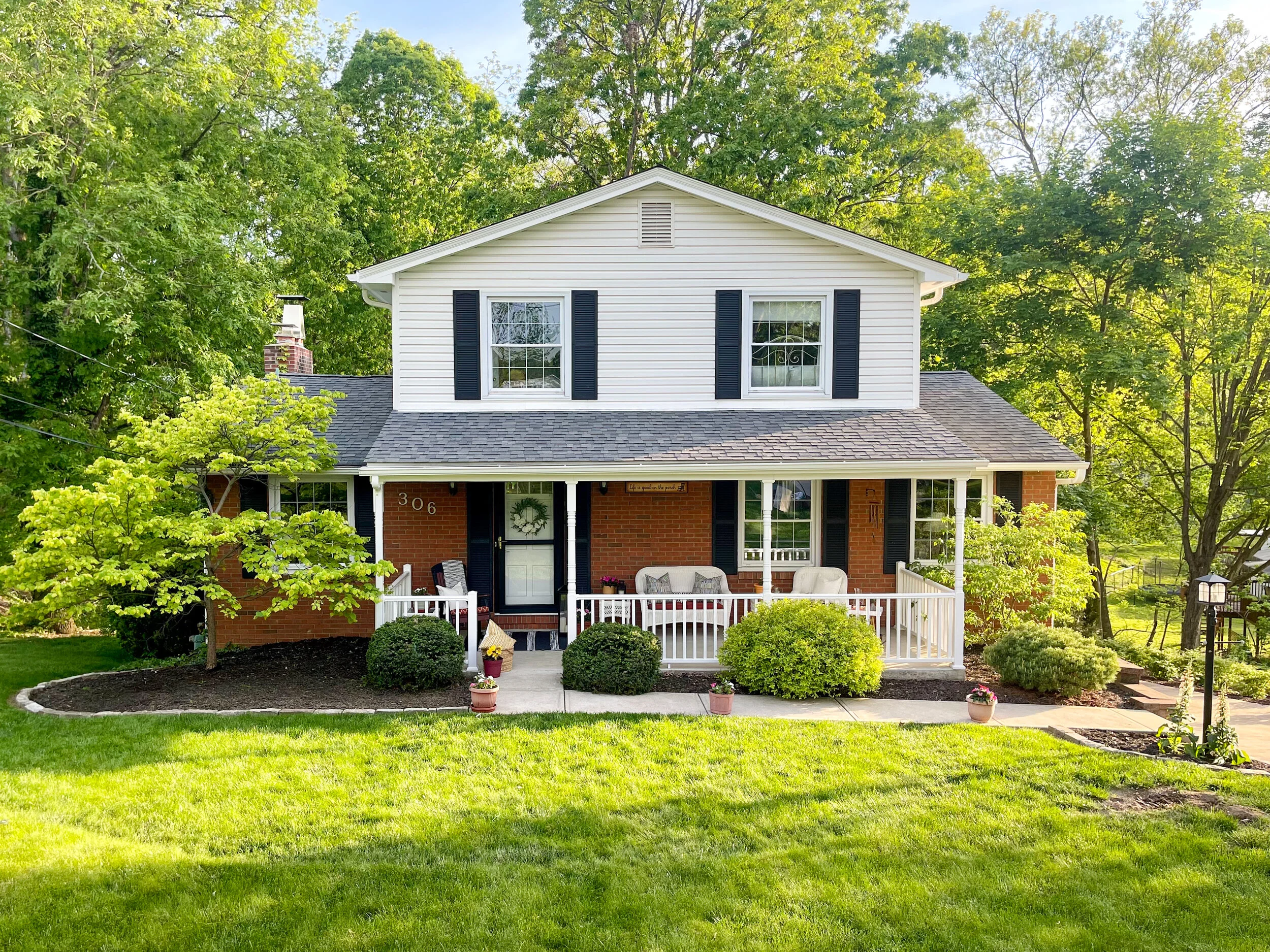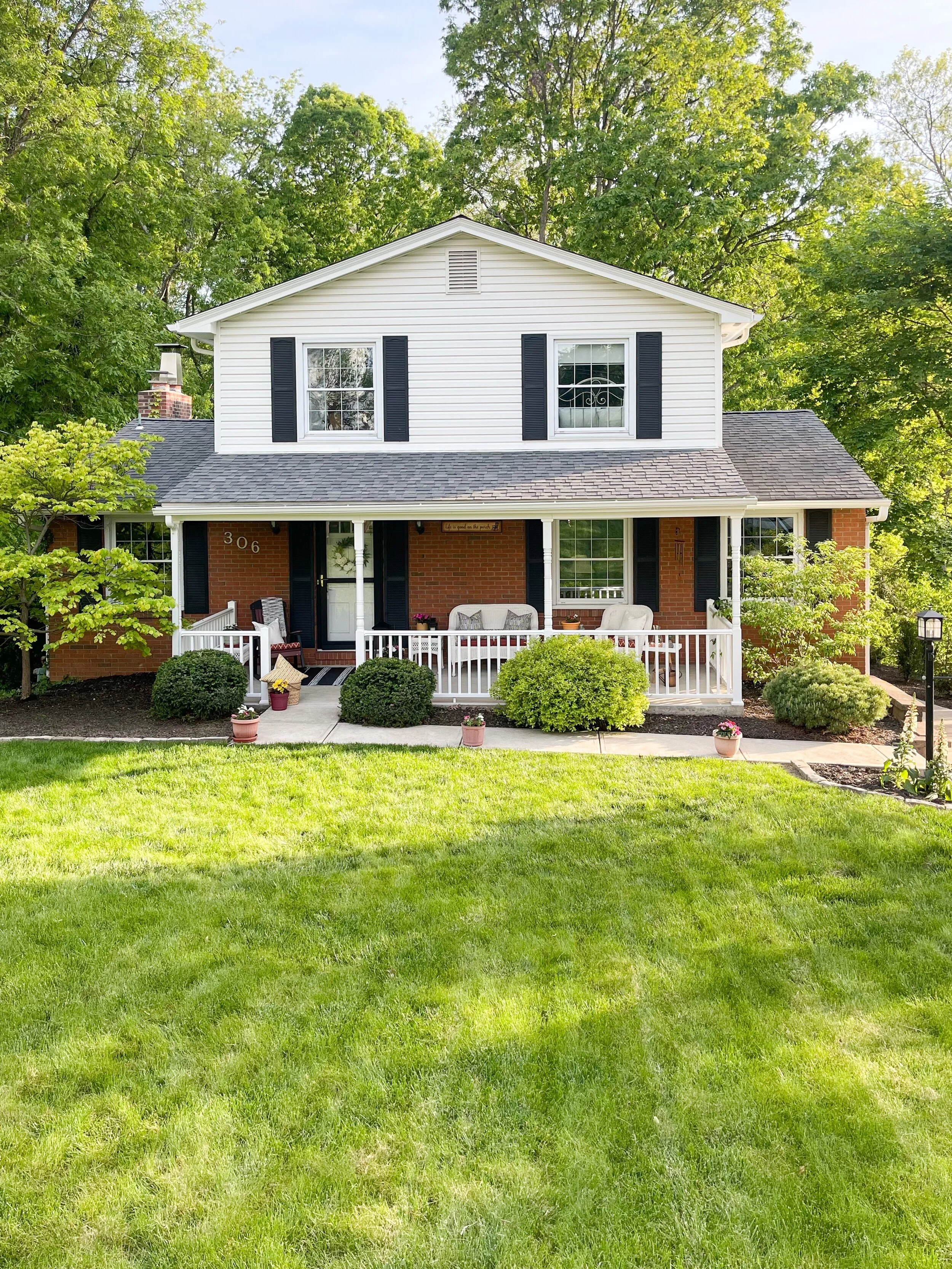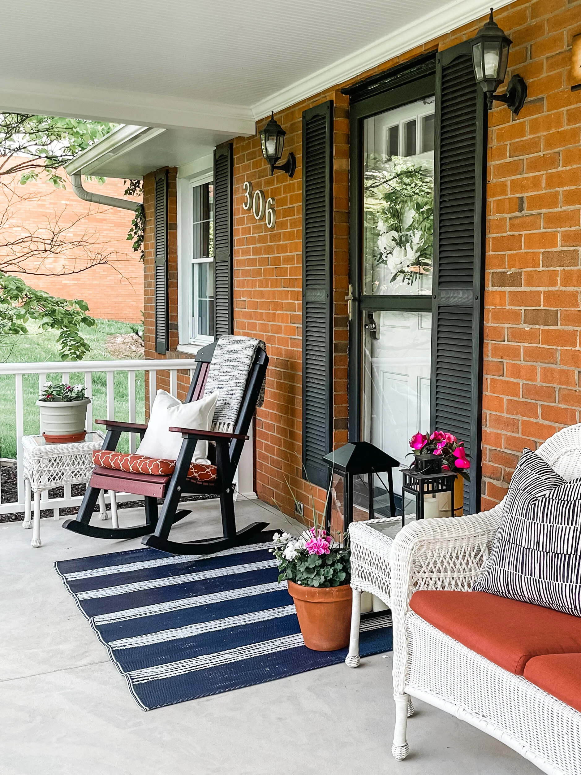 With the addition of new outdoor furniture, simple décor, and some potted plants, the home’s newly updated curb appeal has been effortlessly elevated!